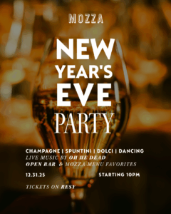 Ring in New Year’s the Mozza way. Flowing Champagne, Italian cocktails, endless spuntini and dolci, and live music from Oh He Dead, an “infectiously groovy” DC band, carry the night into dancing, snapshots with friends, and a midnight countdown that brings everyone together. Benvenuto, 2026!